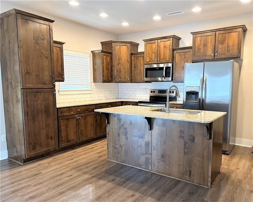 Absolutely gorgeous home just minutes from the University of Arkansas, so perfect for students, and about 4 minutes to I-49. You can literally walk to Walmart Neighborhood Market and several different restaurants from this location. Extremely well cared for 4 bedroom 3.5 bathroom located in the heart of Fayetteville! Home features all Luxury Vinyl Plank throughout the downstairs. Kitchen has all stainless appliances including refrigerator with custom cabinets, granite counters with island and plenty of storage space. Bedroom 1 is downstairs with an en-suite featuring dual vanities and huge walk-in-closet. Upstairs adds 3 more bedrooms. One bedroom has its own en-suite and the other 2 bedrooms share a Jack Jill bathroom. There is a 2-car garage with additional parking outside on the extended driveway for additional cars. The rent includes access to the pool that is around the corner and all outdoor maintenance including landscaping and mowing is included with rent. Pets MAY BE negotiable with additional deposit.